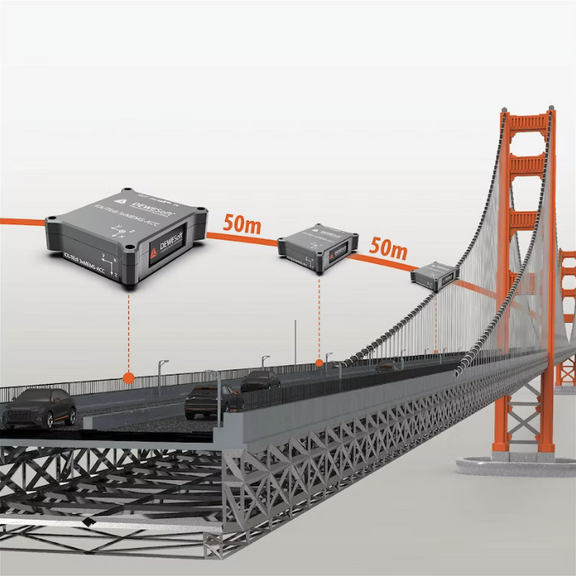 Der empfindliche, triaxiale MEMS-Beschleunigungs- und Neigungssensor eignet sich aufgrund des niedrigen Rauschlevels perfekt für Überwachung von Gebäuden, Brücken, Antennen, Stadien, etc... erhältlich im IP67 Gehäuse, verteilbar mit Standard-RJ45 Patchkabel bis zu 50m von Modul-zu-Modul (Synchronisation per selbem EtherCAT-Kabel). dewesoft.com/de/produkte/iolitei-3xmems