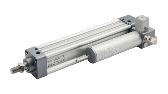 Die integrierte hydraulische Bremse besteht aus einem pneumatischen Zylinder als Aktor und einem hydraulischen System, das als Bremse arbeitet.Die Abmessungen des pneumatischen Zylinders entsprechen ISO 15552. Durch diese Konstruktion ist die Bremse sehr kompakt und hat verkleinerte Abmessungen gegenüber den externen hydraulischen Bremsen.